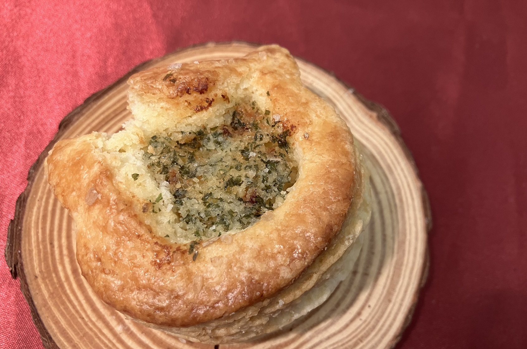 可愛い猫型スコーンの真ん中に詰め込んだバターコアに、ガーリックが香る、病みつきガーリックスコーンです!お食事系スコーンとしても、ビールやワインのお供にも、もちろん男性にもおすすめのねこです!