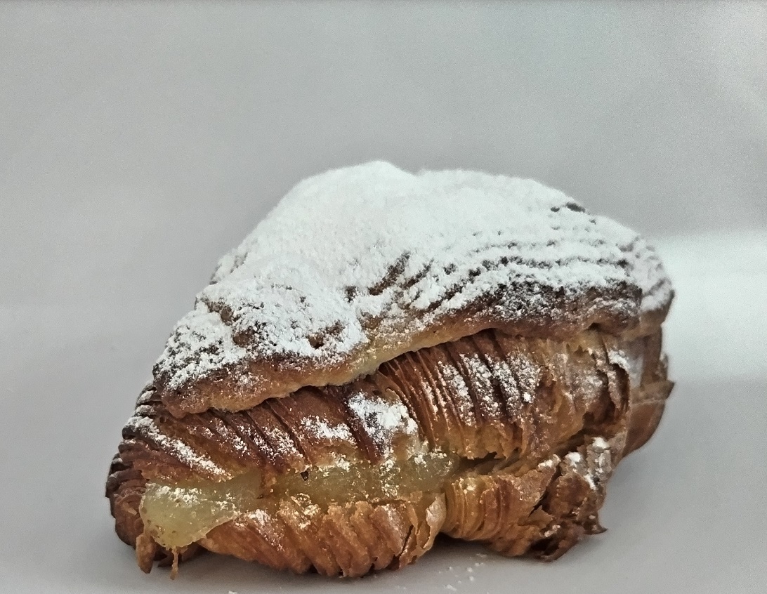 1番人気のクロワッサンにアーモンドクリームを乗せて中にアップルを入れたアップルパイの用なクロワッサンです!