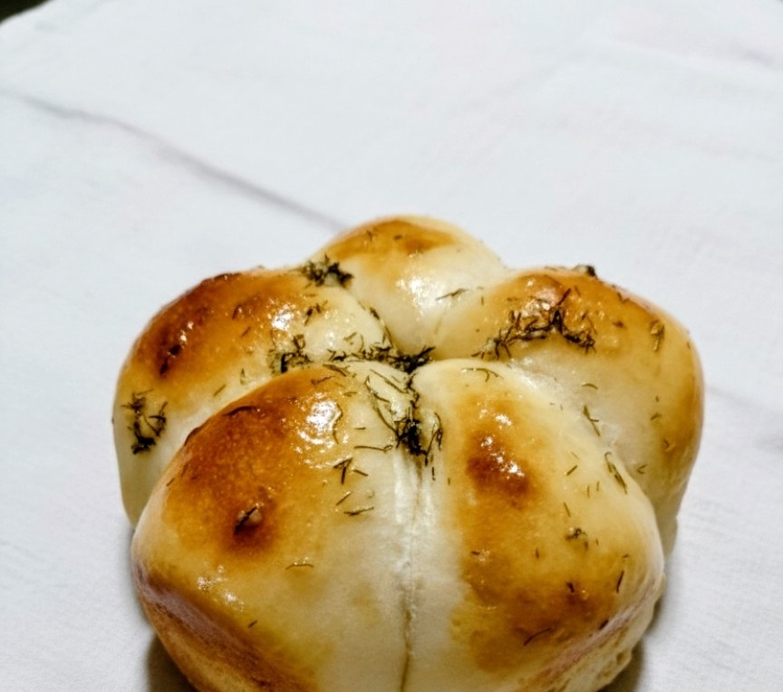 ウクライナの代表的なちぎりパン。ガーリックソースとハーブを上からかけているので、スープや肉料理にピッタリな香ばしい味わい