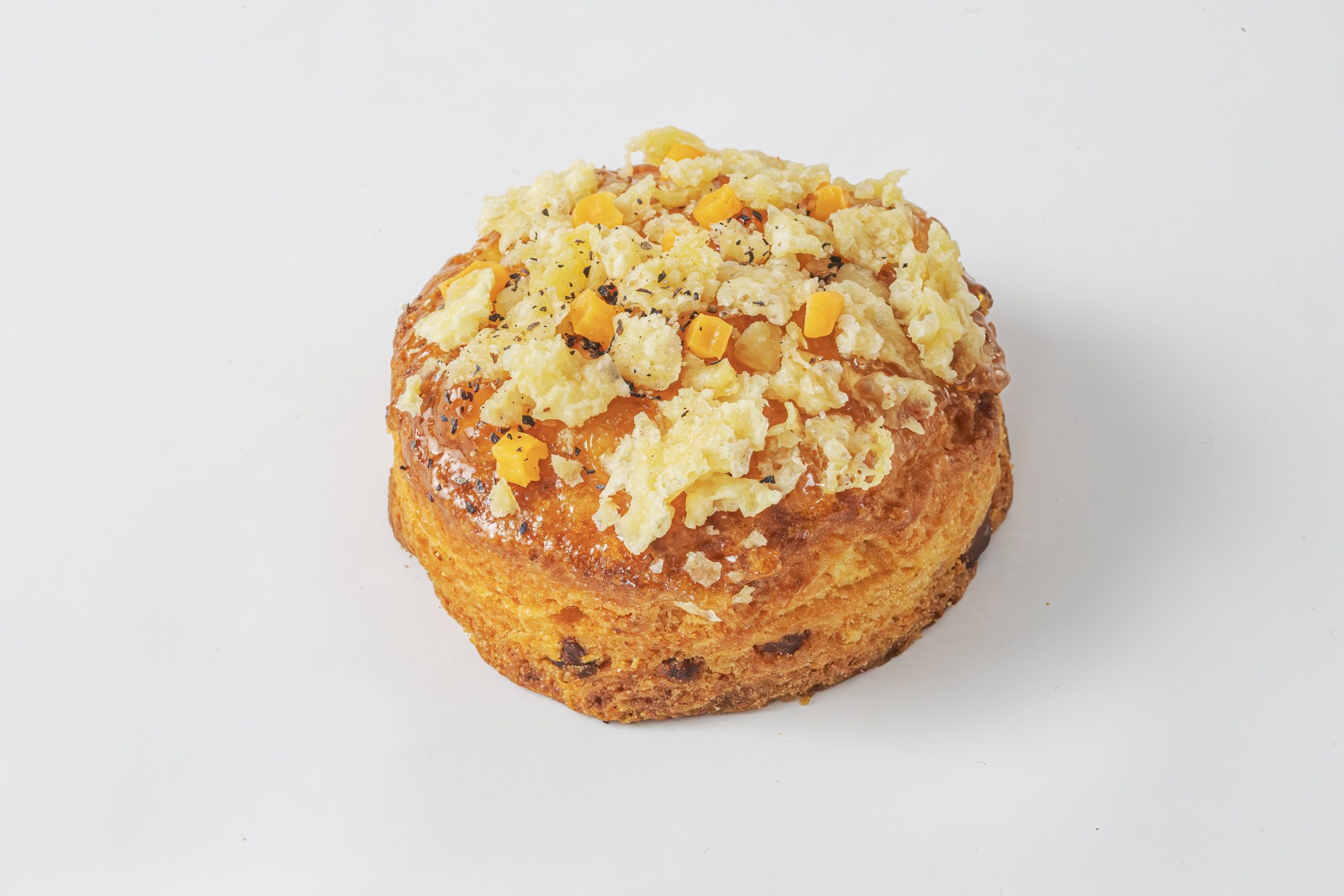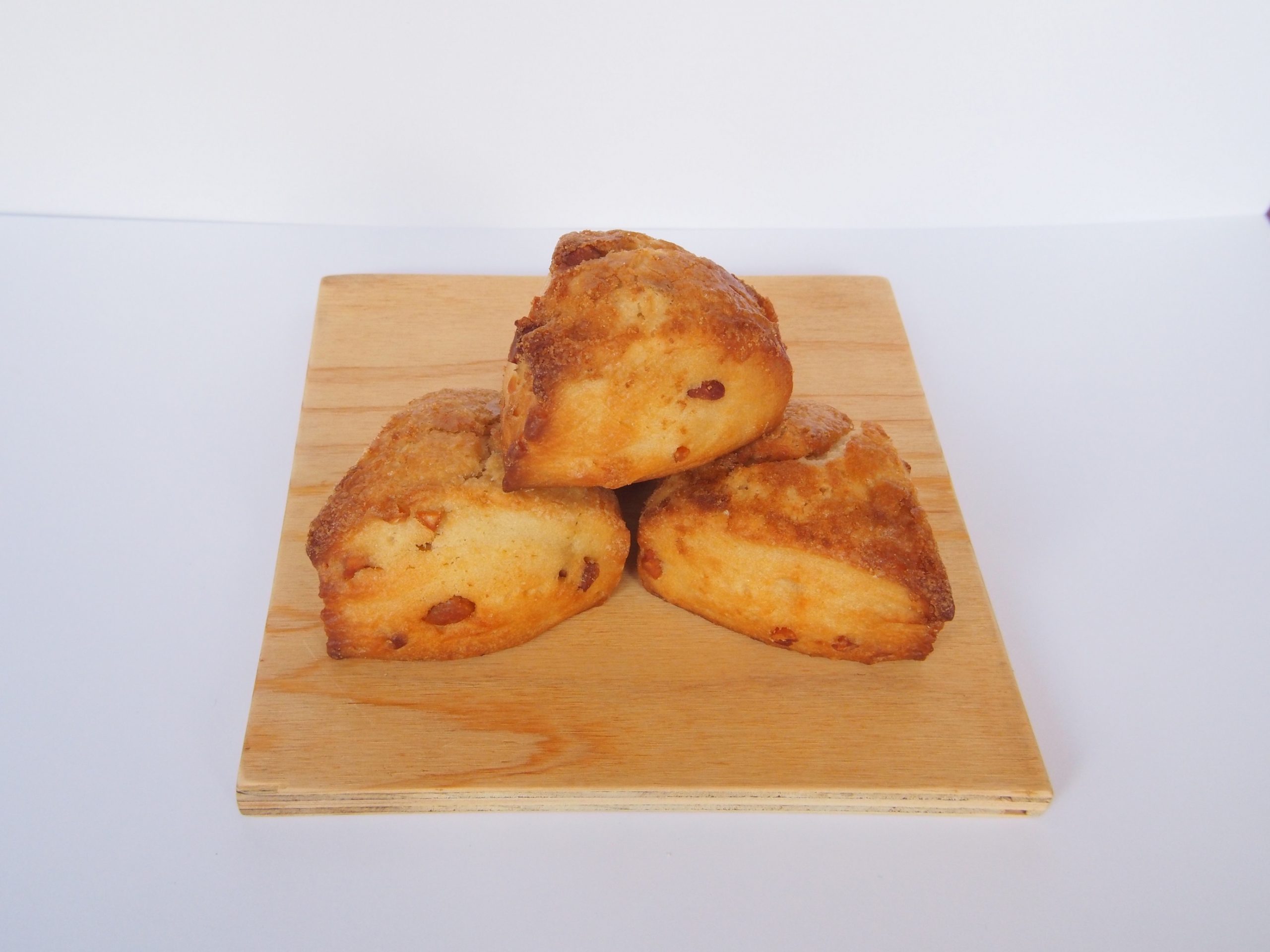 "はちみつのまろやかな甘さとチェダーチーズの香ばしさが重なり合う、甘じょっぱい味わいが魅力のスコーンです。生地にはチーズとはちみつを練り込み、しっとりとコクのある生地に。さらに表面には角切りチーズとチーズチップをたっぷりのせて焼き上げ、こんがりとした焼き色と香ばしさを引き出しました。甘すぎず、塩気が強すぎることもなく、ふわりと広がるやさしい風味。朝食にも午後のおやつにも、ちょうどよく寄り添ってくれる、そんな“いつものひととき”にぴったりの一品です。見た目は控えめでも、食べてみると忘れられない。あたたかな日常の中で、ふと食べたくなるようなスコーンです。