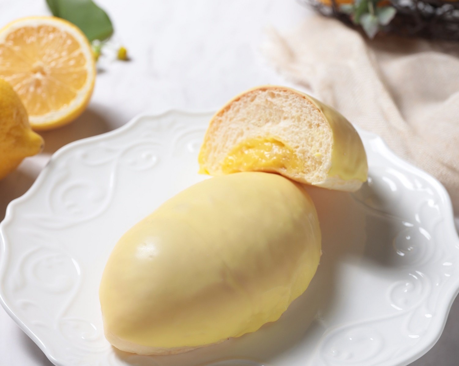 瀬戸内レモンの爽やかな味わいのチーズクリームを、レモン型の生地にとじ込めてレモンチョコをコーティングしました。