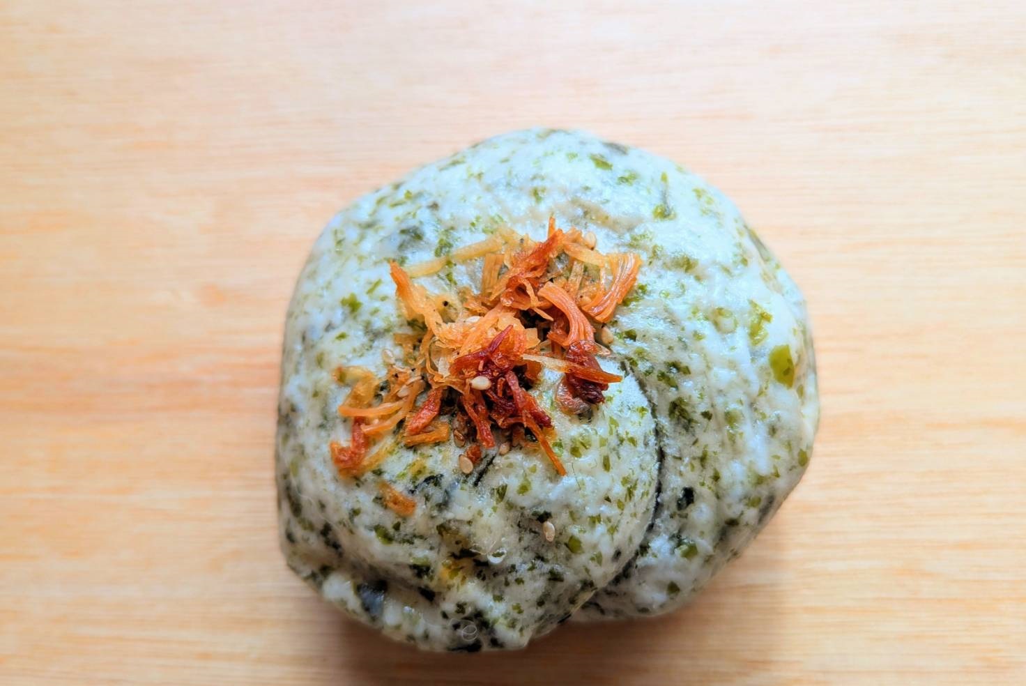 伊豆のしらすとマッシュしたじゃが芋をビーガンマヨネーズで和え米粉パンで包みチーズをトッピングしました
