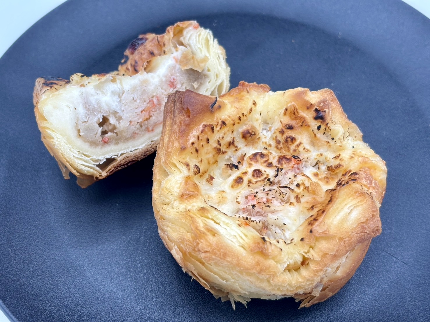 "サックサクに焼き上げたデニッシュ生地に、旨みの詰まったズワイガニを贅沢にトッピング。濃厚なかにみそソースが、まろやかなモッツァレラチーズと重なり合い、それぞれの素材が主張しすぎることなく、絶妙なバランスで調和します。軽やかな食感と奥行きのある味わいを併せ持つ、完成度を追求した一品です。