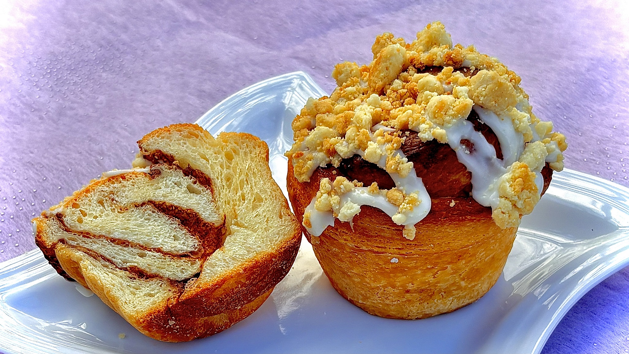 那須高原産の卵を使用し、しっとりふわふわに仕上げた生地にパンチの効いた自家製シナモンペーストをロール。仕上げにはチーズを忍ばせたフォンダンソースを乗せ、ごつごつとした香ばしい食感の岩(ロック)のようなクランブルをトッピング。ロックとロールでペニーレインが織りなす食のロックンロールをお楽しみください。