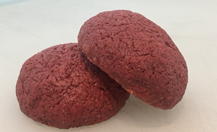 丸く型取り、ビーツを使用した赤いメロンパン。パンのフェス赤レンガ10周年を記念し、店頭販売しているメロンパンを赤レンガ風にリメイクしました。中には有機のマカダミアやクランベリーを練りこみ、味や風味も楽しめる一品に仕上げました。