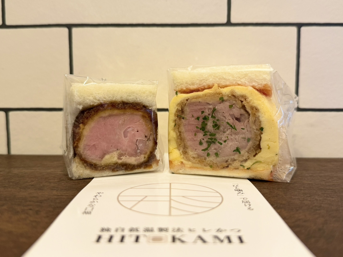HITOKAMI名物のスタンダードな和ヒレかつ「特製濃厚黒ソース」と、ヒレかつを丸ごとオムレツで包みケチャップをアクセントに加えた洋の「おむヒレかつ」の贅沢2種食べ比べセット!あなたの推しカツはどっち?