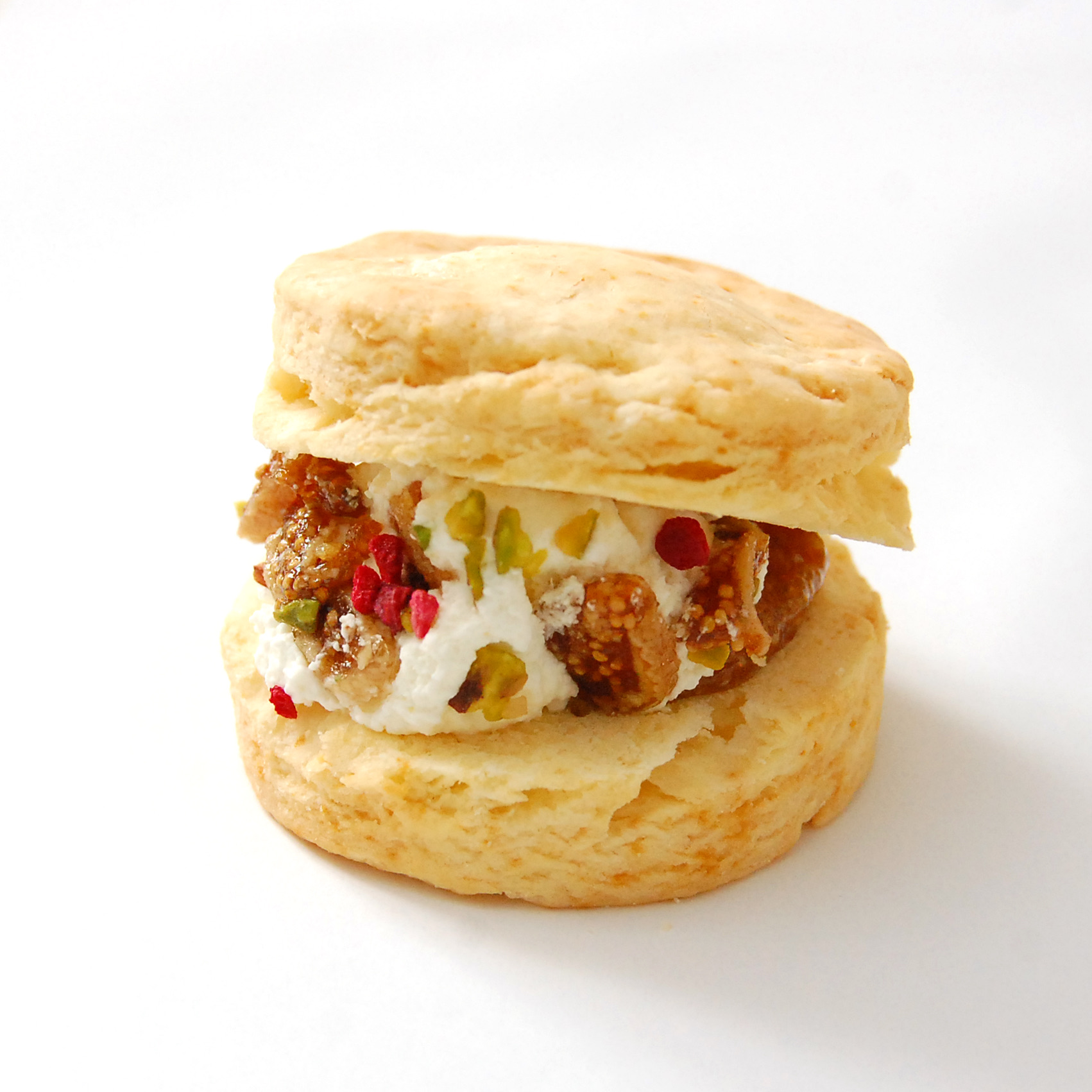 百貨店のスコーン展でもご好評いただいた一品。しっとり焼き上げたスコーンに自家製スコーンクリームをいちじく・ピスタチオ・ラズベリーと合わせ、贅沢にサンド。ケーキのように楽しめる特別な味わいです。