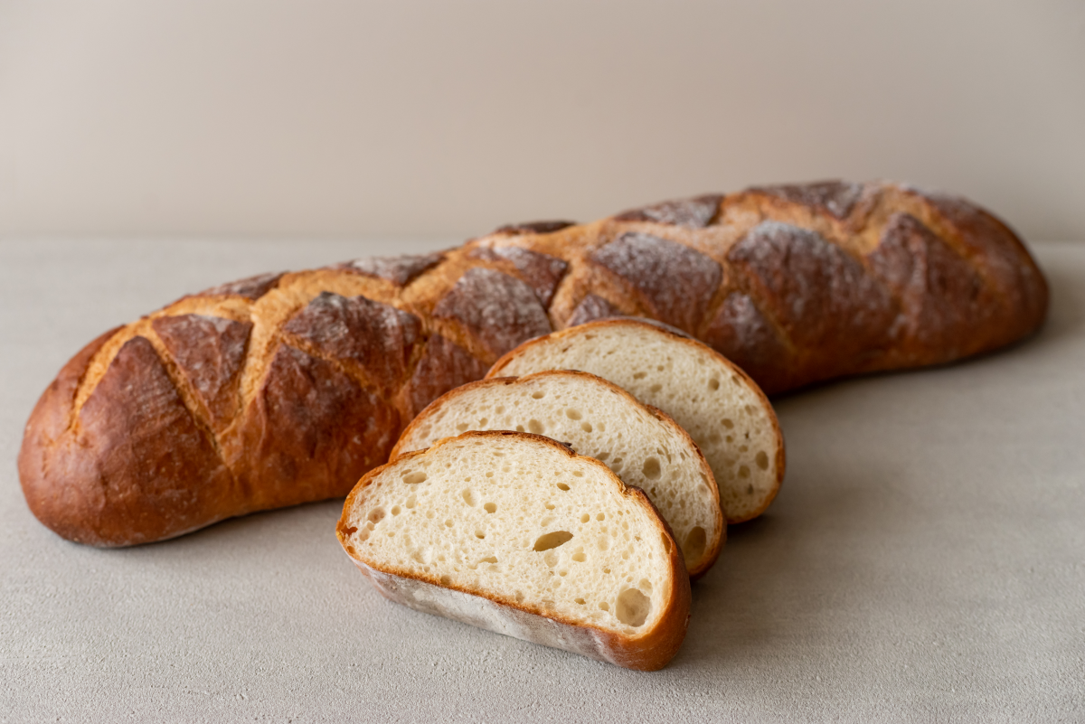 国産の有機栽培・自然栽培の小麦を自家製しています。フランス伝統のルヴァンを使用していますので、日持ちが良く、滋味深い味わいをお楽しみ頂けます。ナチュラルハム・フロマージュとの相性も抜群です。